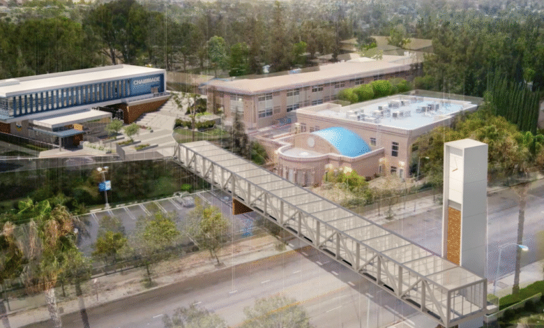 Chaminade hat einen Bauplan, der Fußgängerbrücken umfasst, um den Hauptcampus gegenüber den neuen Feldern zu verbinden. Das neue Ballfeld ersetzt das aktuelle Baseballfeld. Es wird ein neues Campus -Klassenzimmer und den neuen Schuleingang geben.