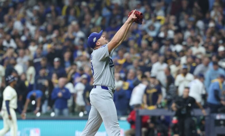 Aber er Tun Finalist Save the Dodgers. 2:1 gewonnen Milwaukee Brewers im Eröffnungsspiel der National League Championship Series am Montag.